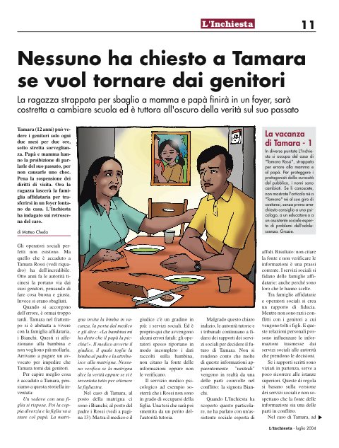 Tamara (12 anni) può vedere i genitori solo ogni due mesi per due ore, sotto stretta sorveglianza. Papà e mamma hanno la proibizione di parlarle del suo passato, per non causarle uno choc. Pena la sospensione dei diritti di visita. Ora la ragazza lascerà la famiglia affidataria per trasferirsi in un foyer lontano da casa. L'Inchiesta ha indagato sui retroscena del caso.