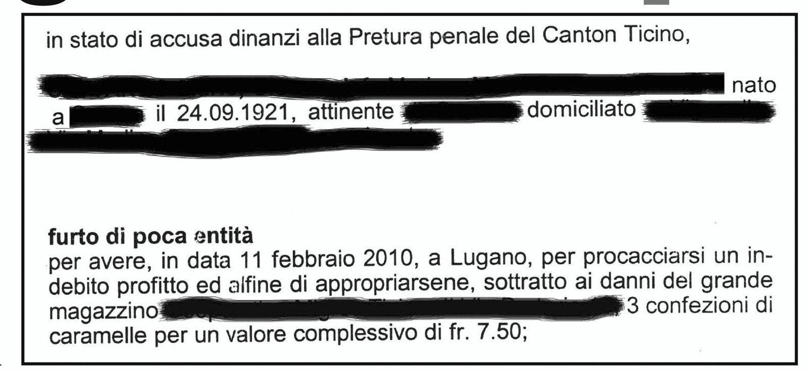 di Fr 7.50 (sette franchi e cinquanta centesimi), senza pagare!! Intanto le cause